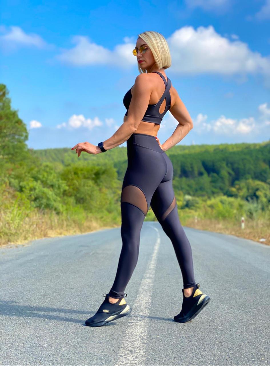 Siyah Renk Tül Detaytlı Spor Tayt