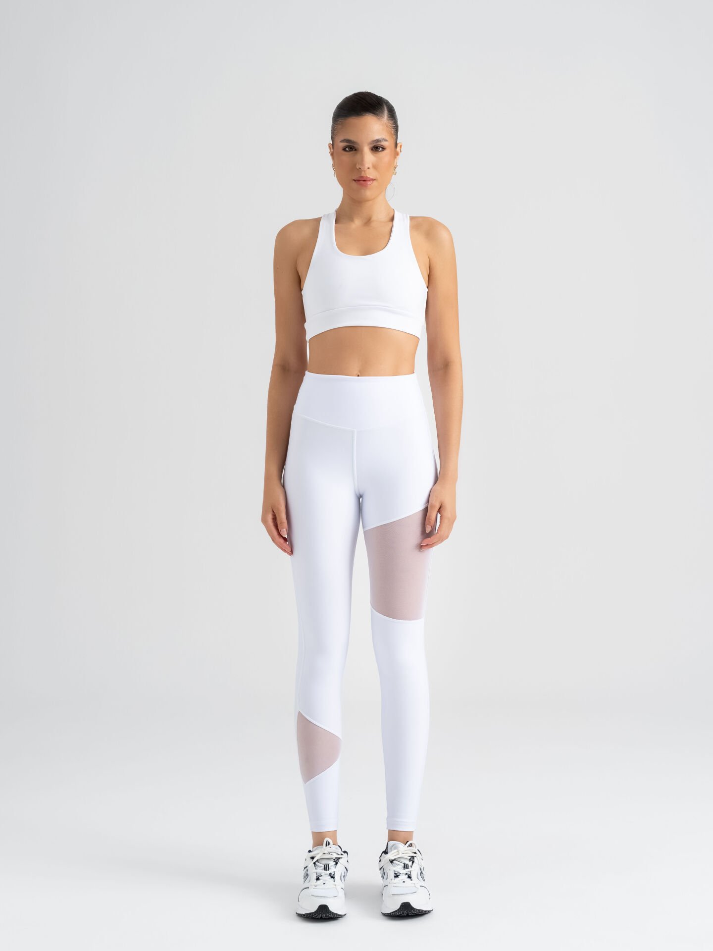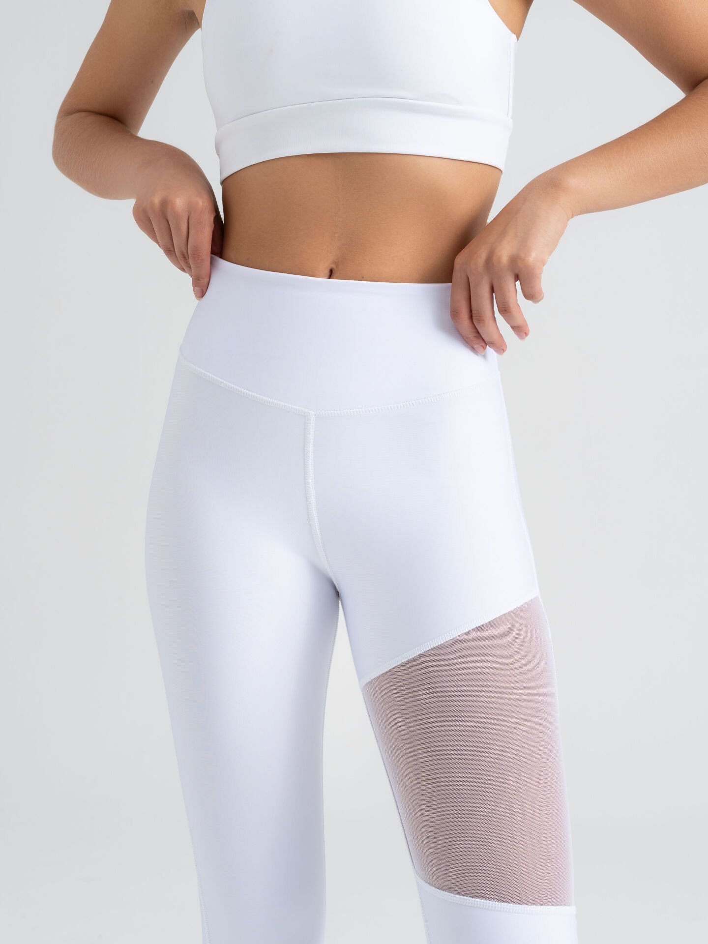 Beyaz Renk Tül Detaylı Spor Tayt 1016