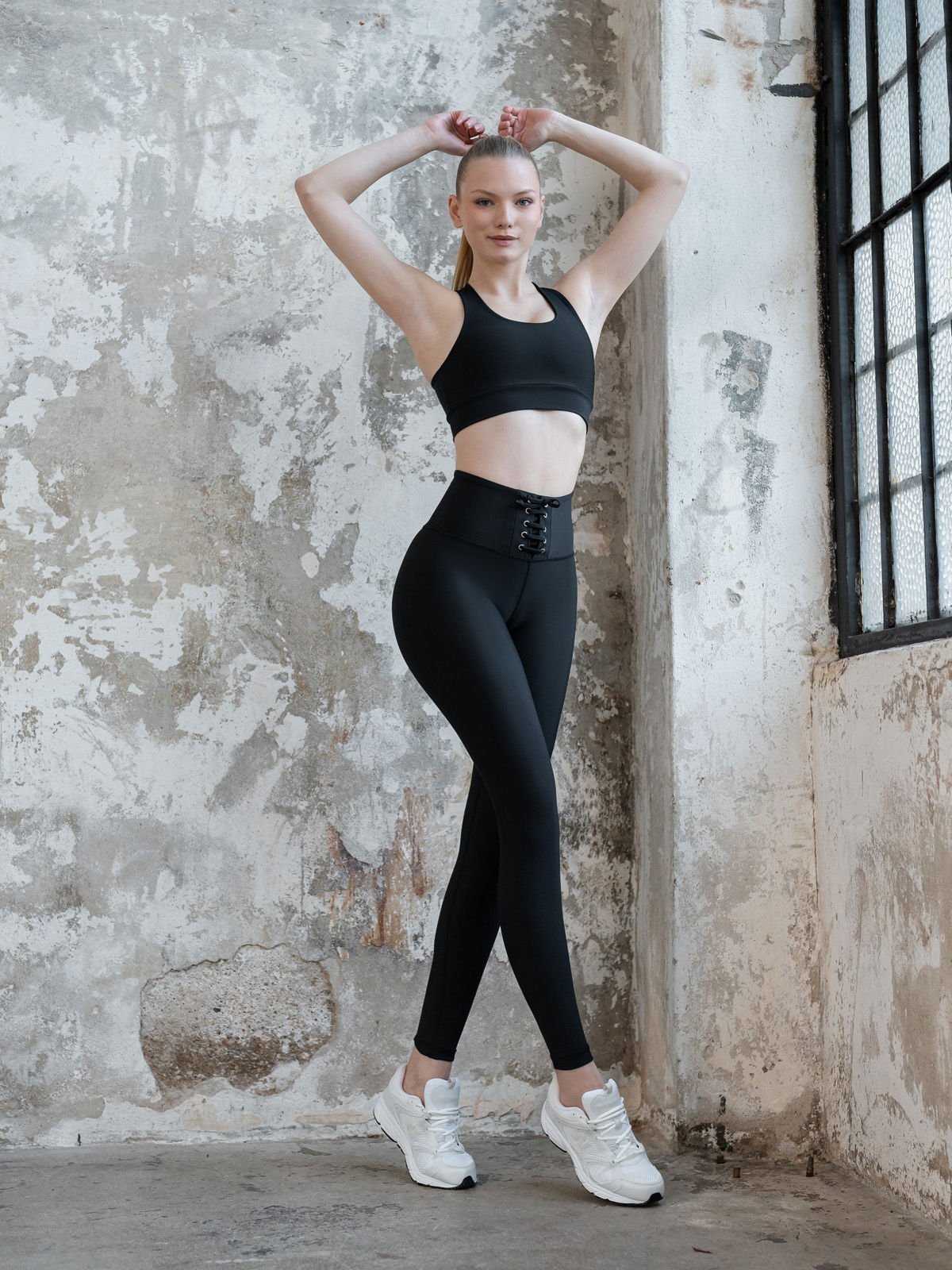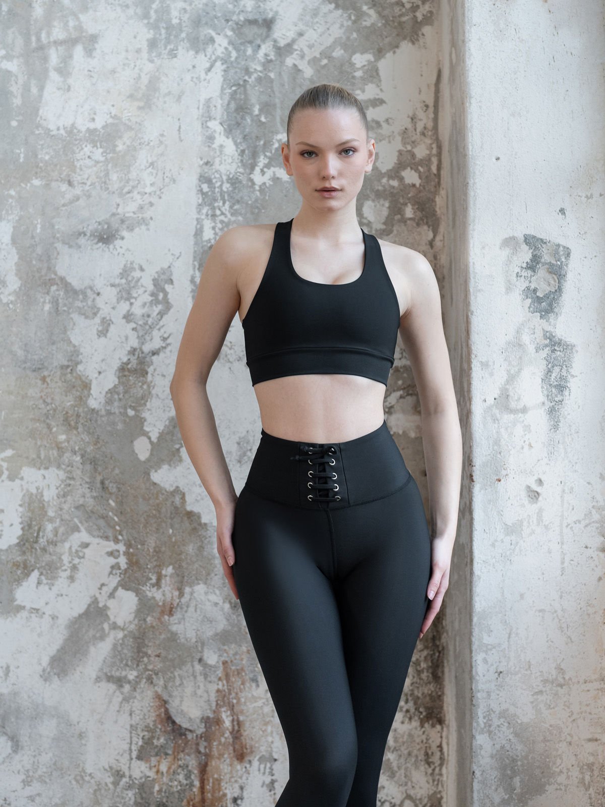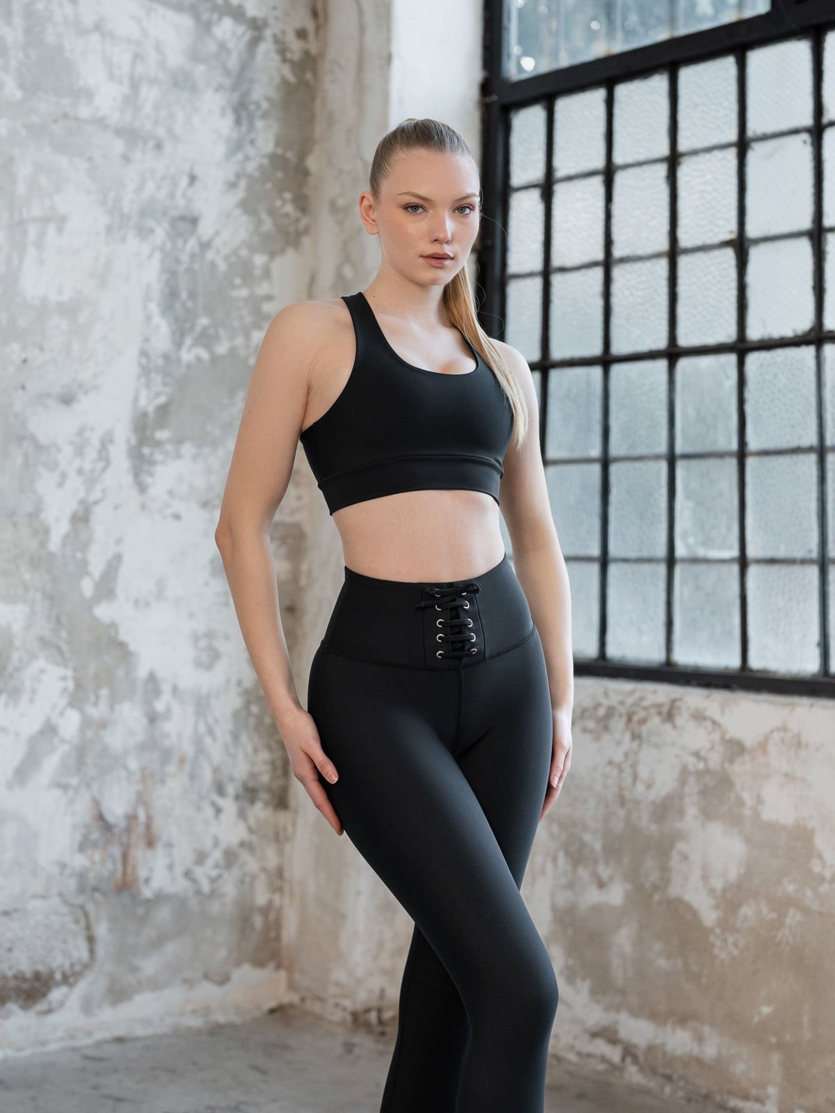 Siyah İp Detaylı Spor Tayt 211