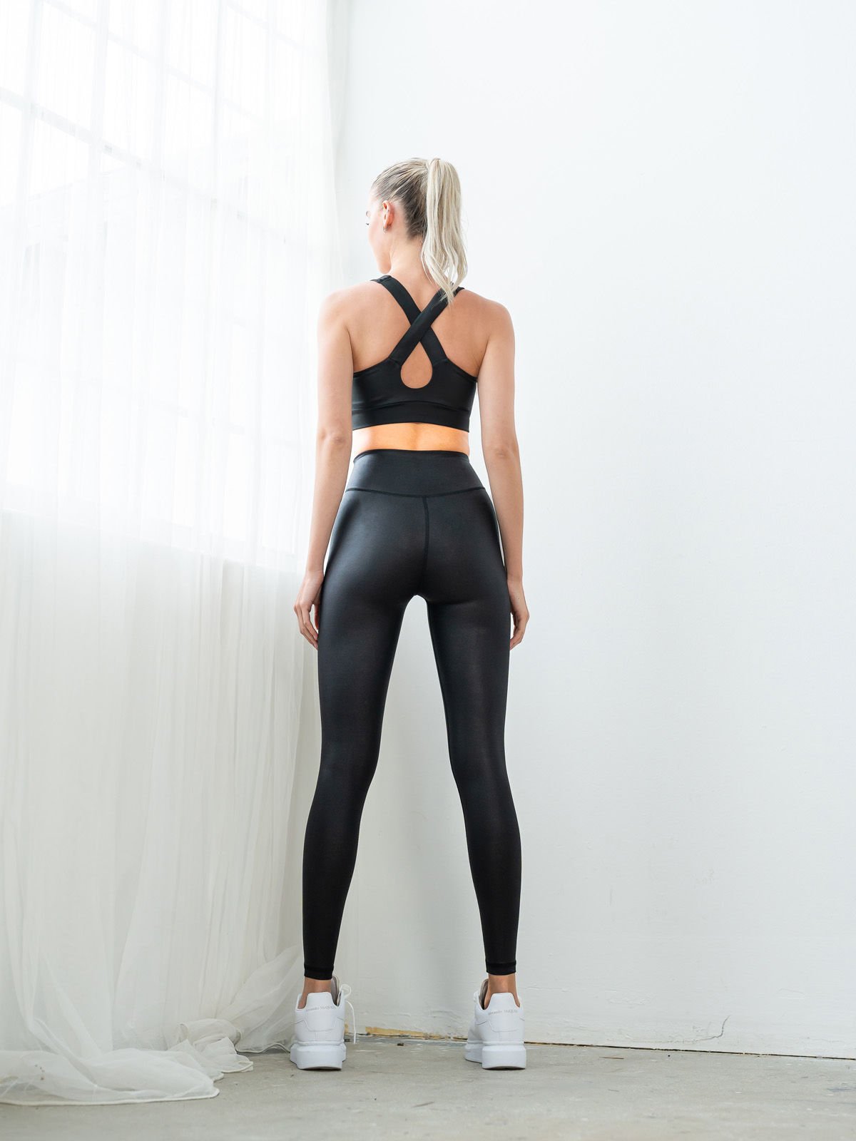 898 Deri Görünümlü Parlak Siyah Tayt