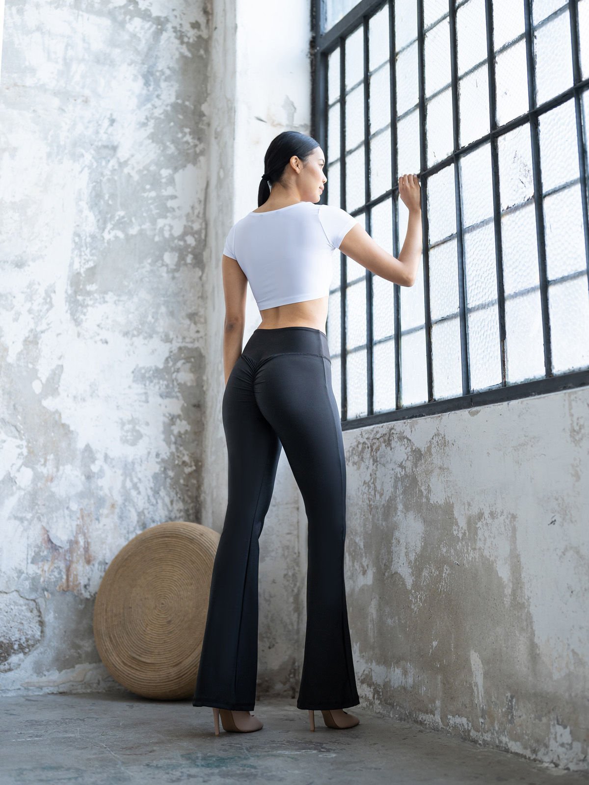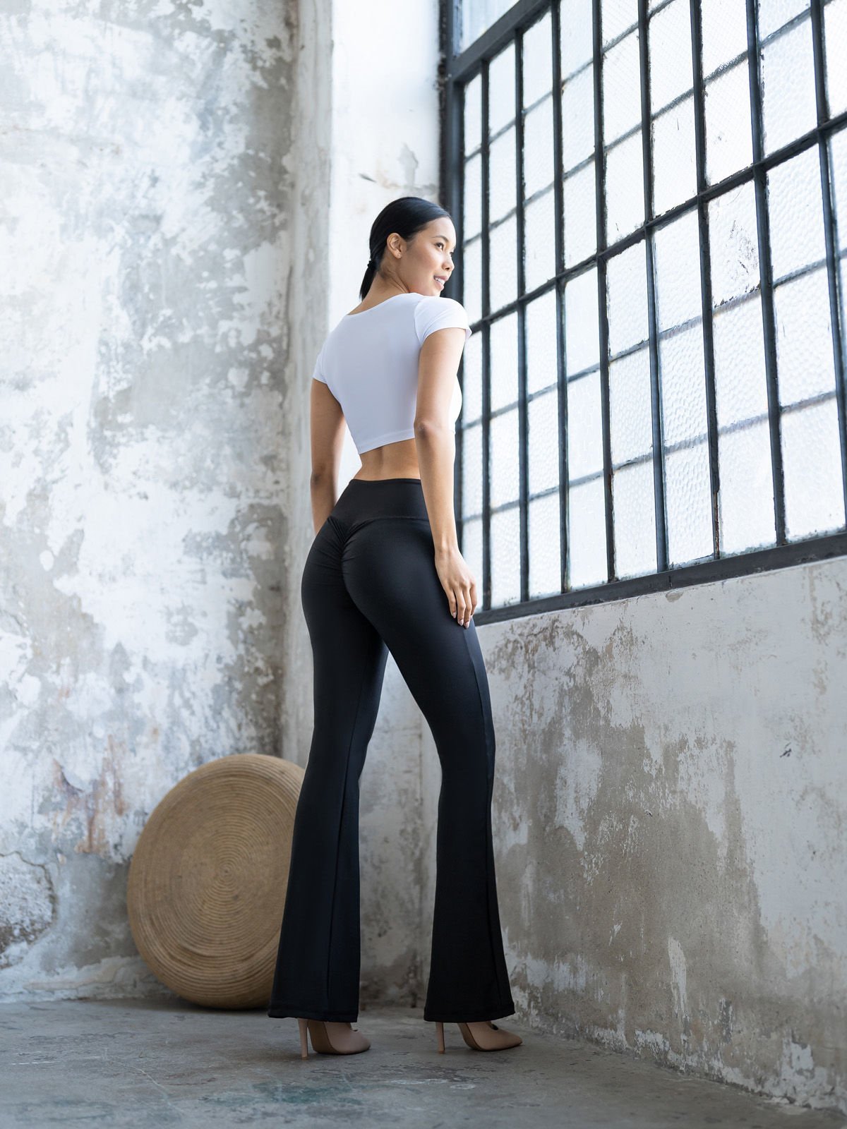 Arkası Büzgülü İspanyol Paça Ve bel Tayt Siyah Renk 438