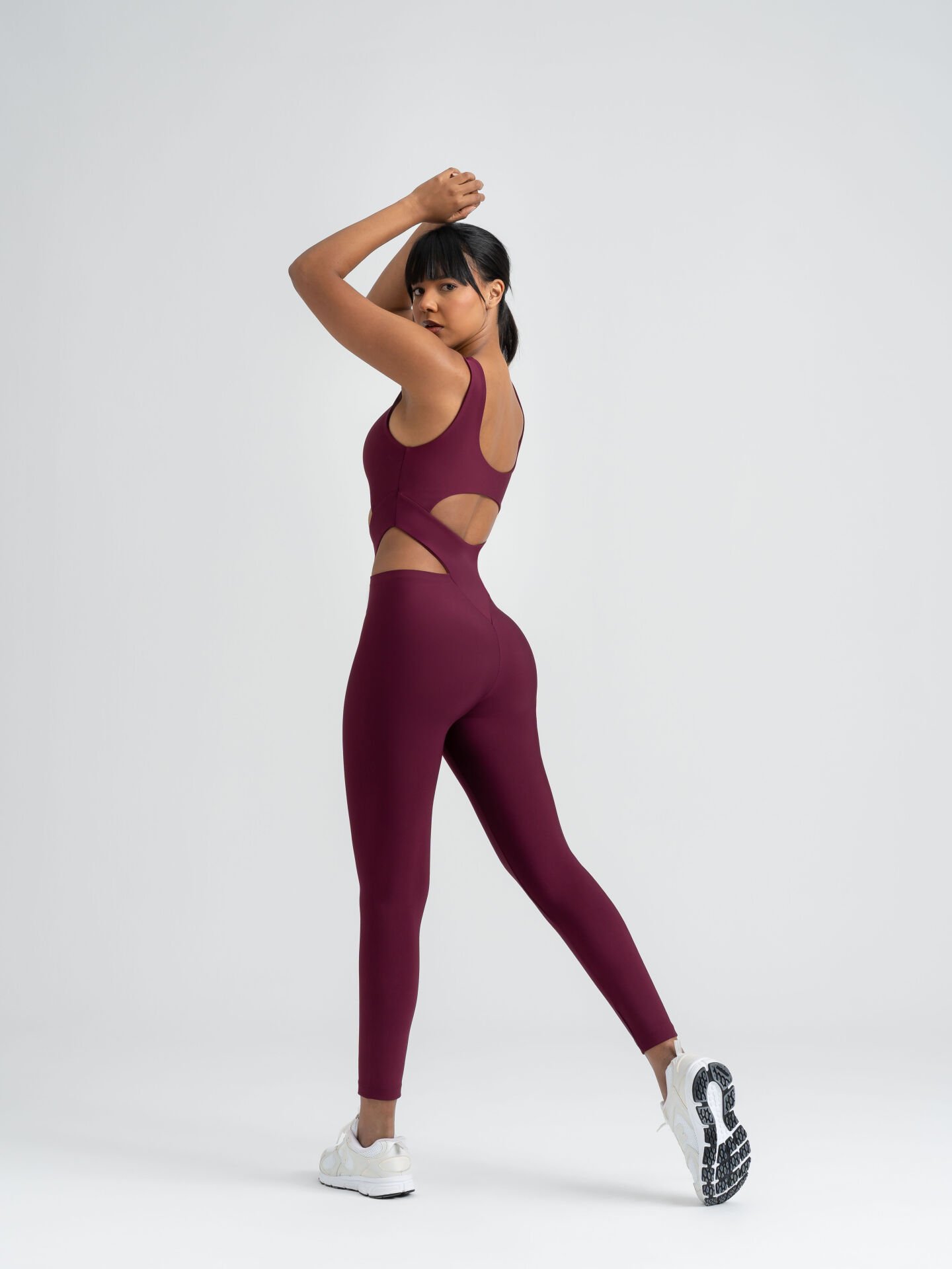 Seksi ve iddialı bir görünüm için tasarlandı. Bel hattını incelten kavisli cut-out paneller ve yüksek bel formu, kum saati etkisi yaratarak silueti belirginleştirir. Mürdüm rengi güçlü ve sofistike bir duruş sunar. Opak ve esnek kumaş, ikinci ten hissiyle bedeni sarar. Gündüz sneaker ile modern, gece topuklu ve ceketle etkileyici bir stile dönüşür.