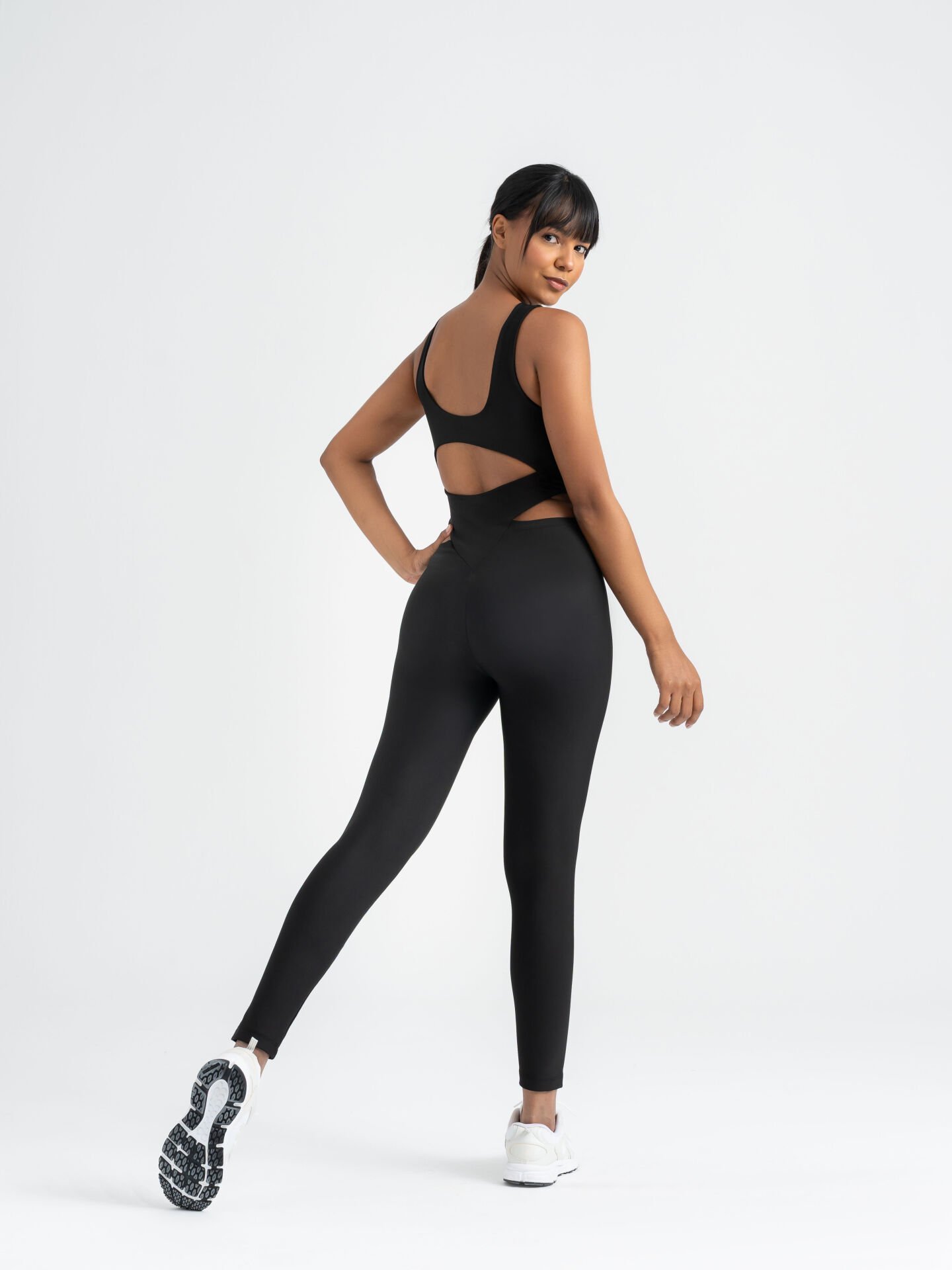 Seksi ve iddialı bir görünüm için tasarlandı. Bel hattını incelten kavisli cut-out paneller ve yüksek bel formu, kum saati etkisi yaratarak silueti belirginleştirir. Mat siyah ince gösterir; opak ve esnek kumaş ikinci-ten hissiyle bedeni sarar. Gündüz sneaker’la cool, gece topuklu & ceketle çekici bir stile dönüşür.