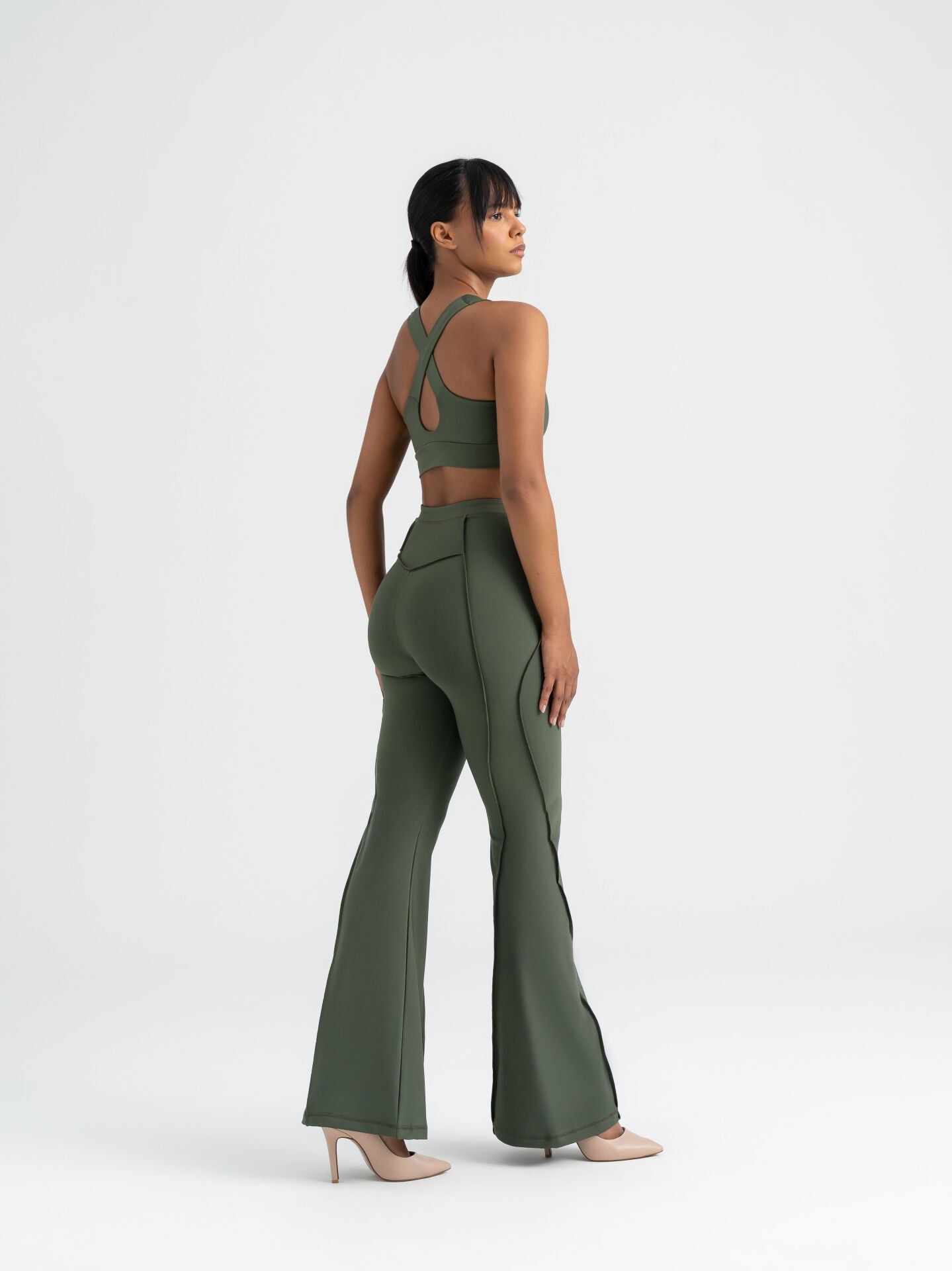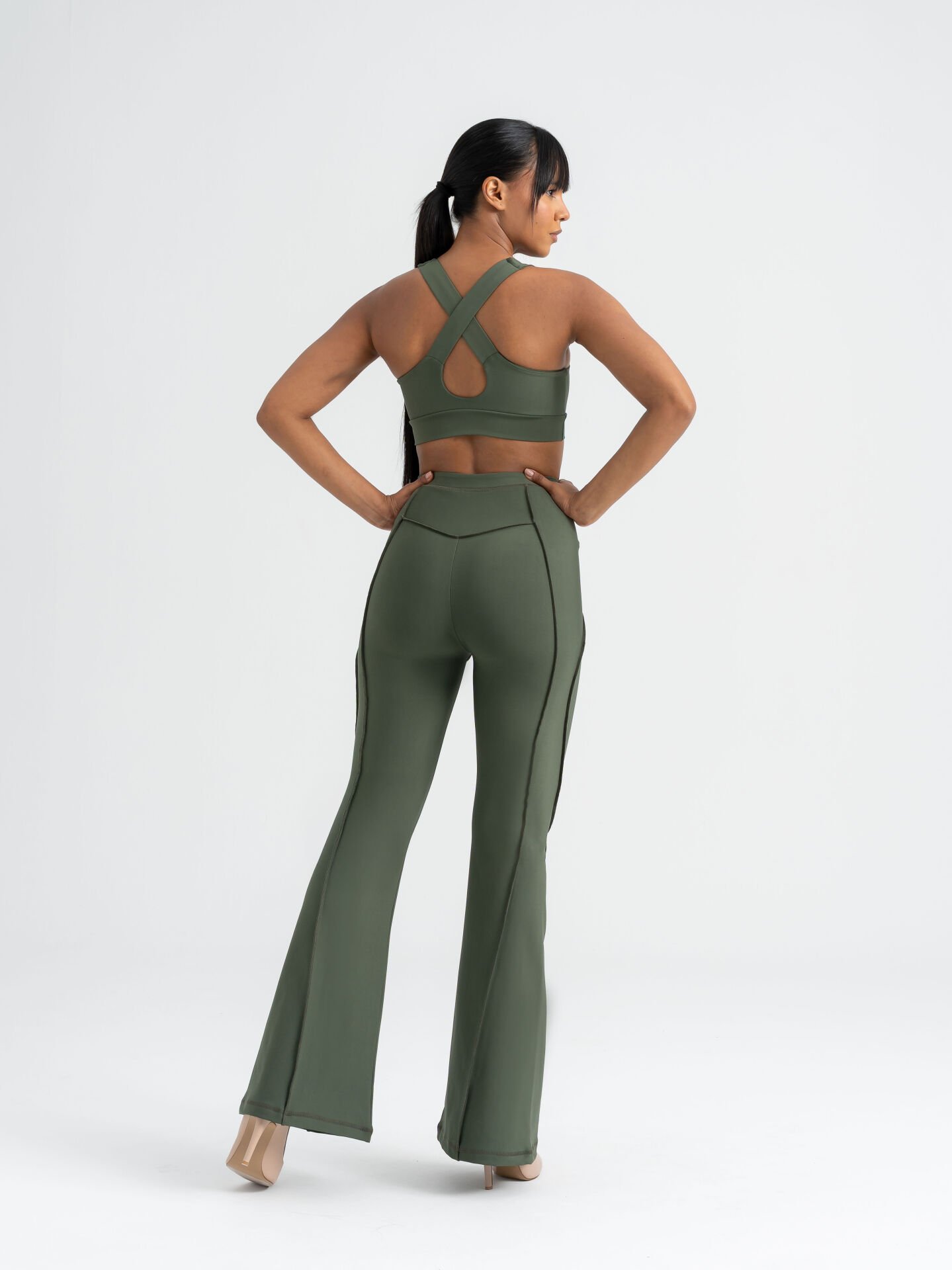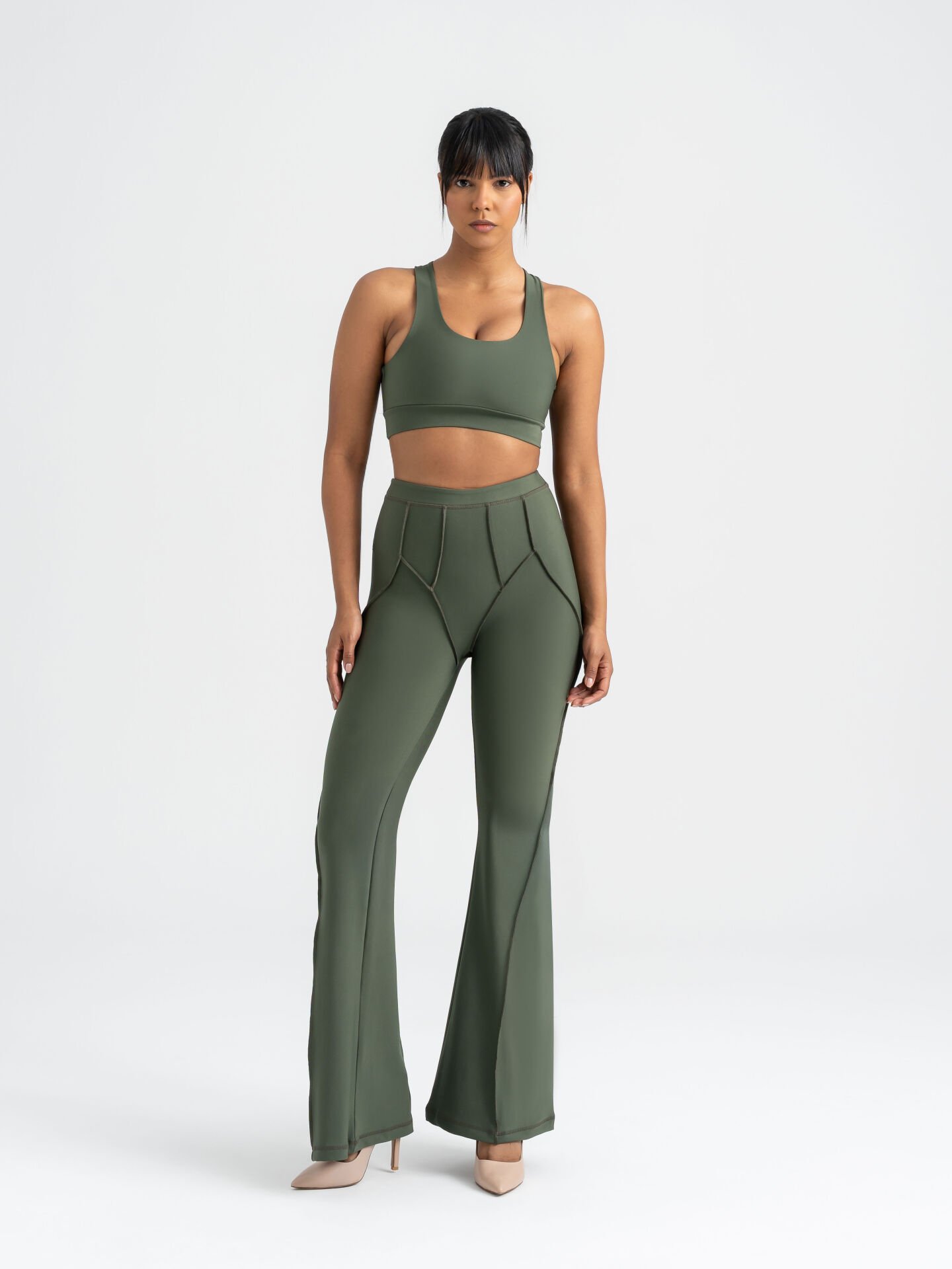 Flare Fit İspanyol Tayt Haki Renk 1266