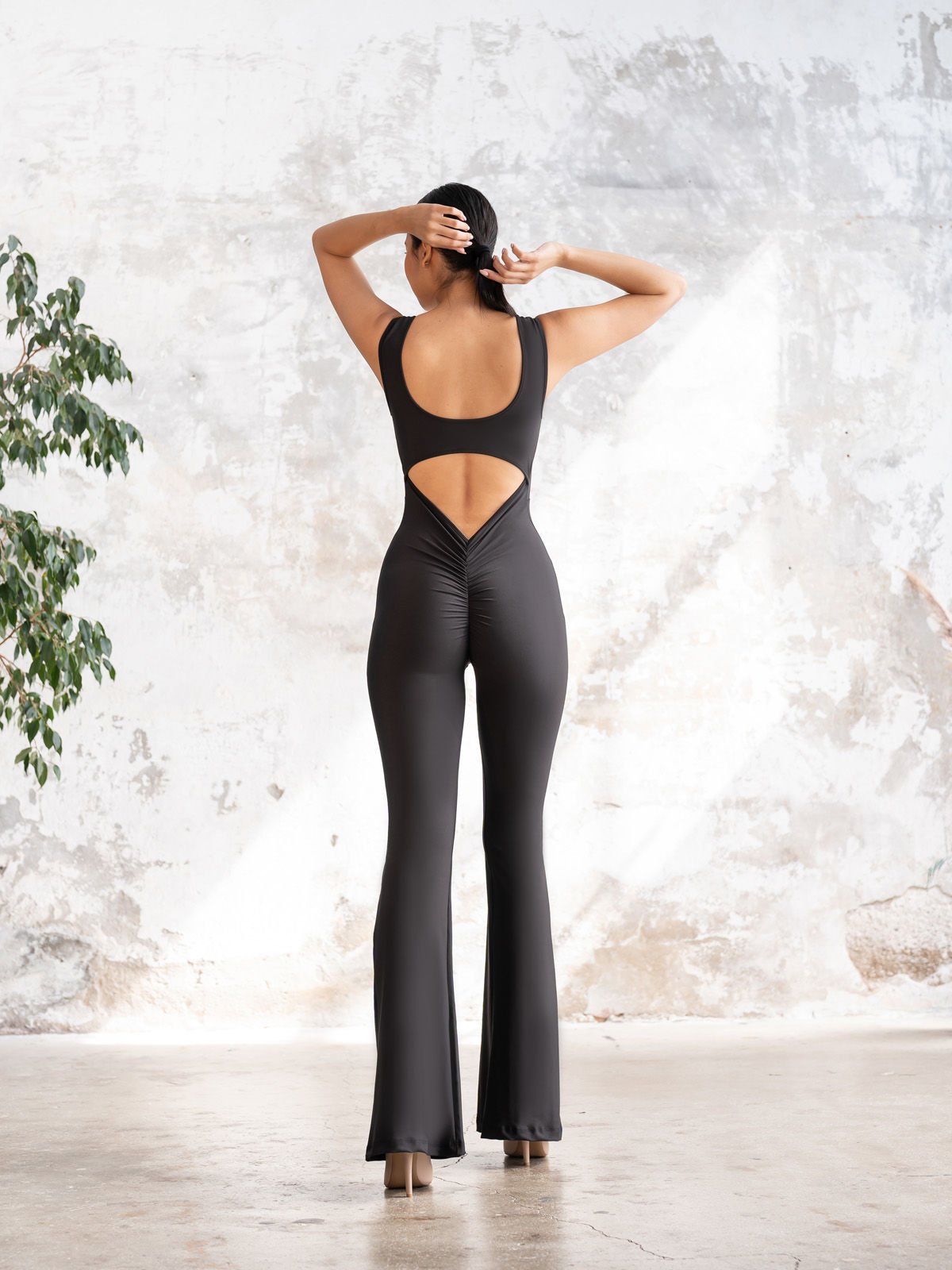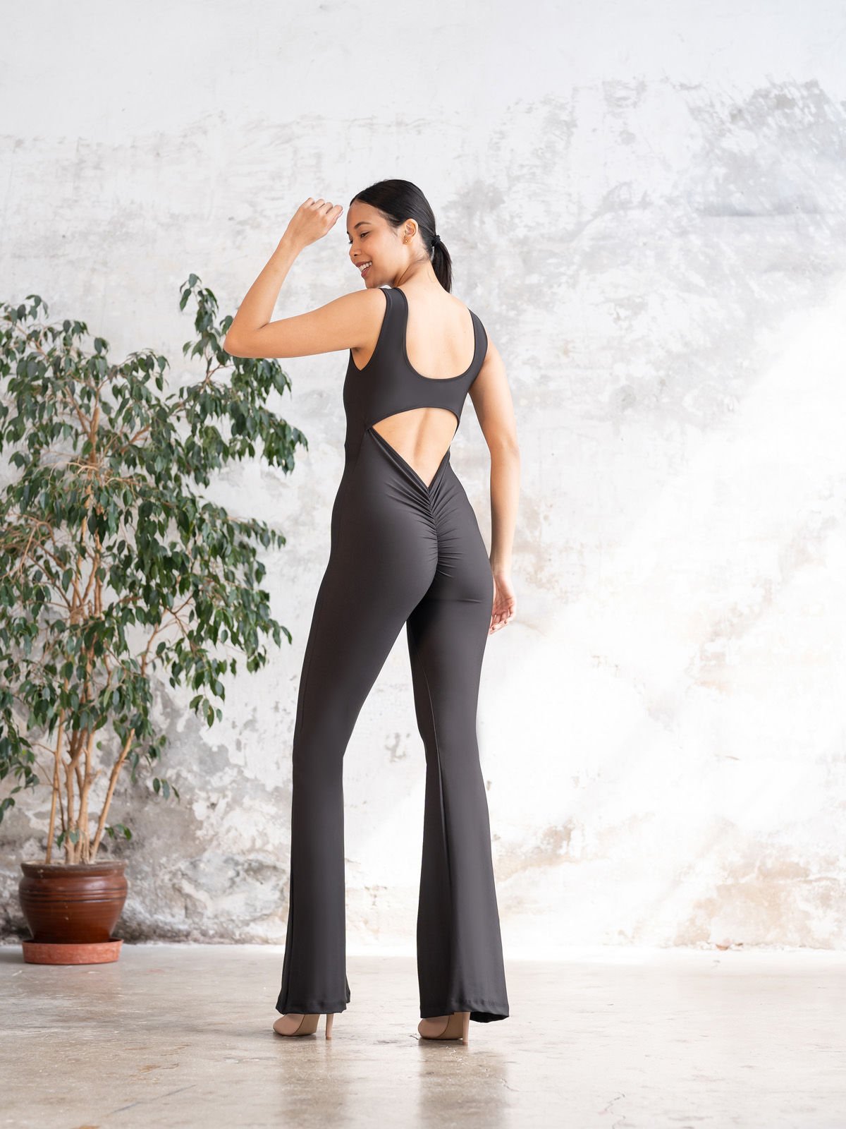 İspanyol Scrunch Butt Tulum Siyah Renk 1500