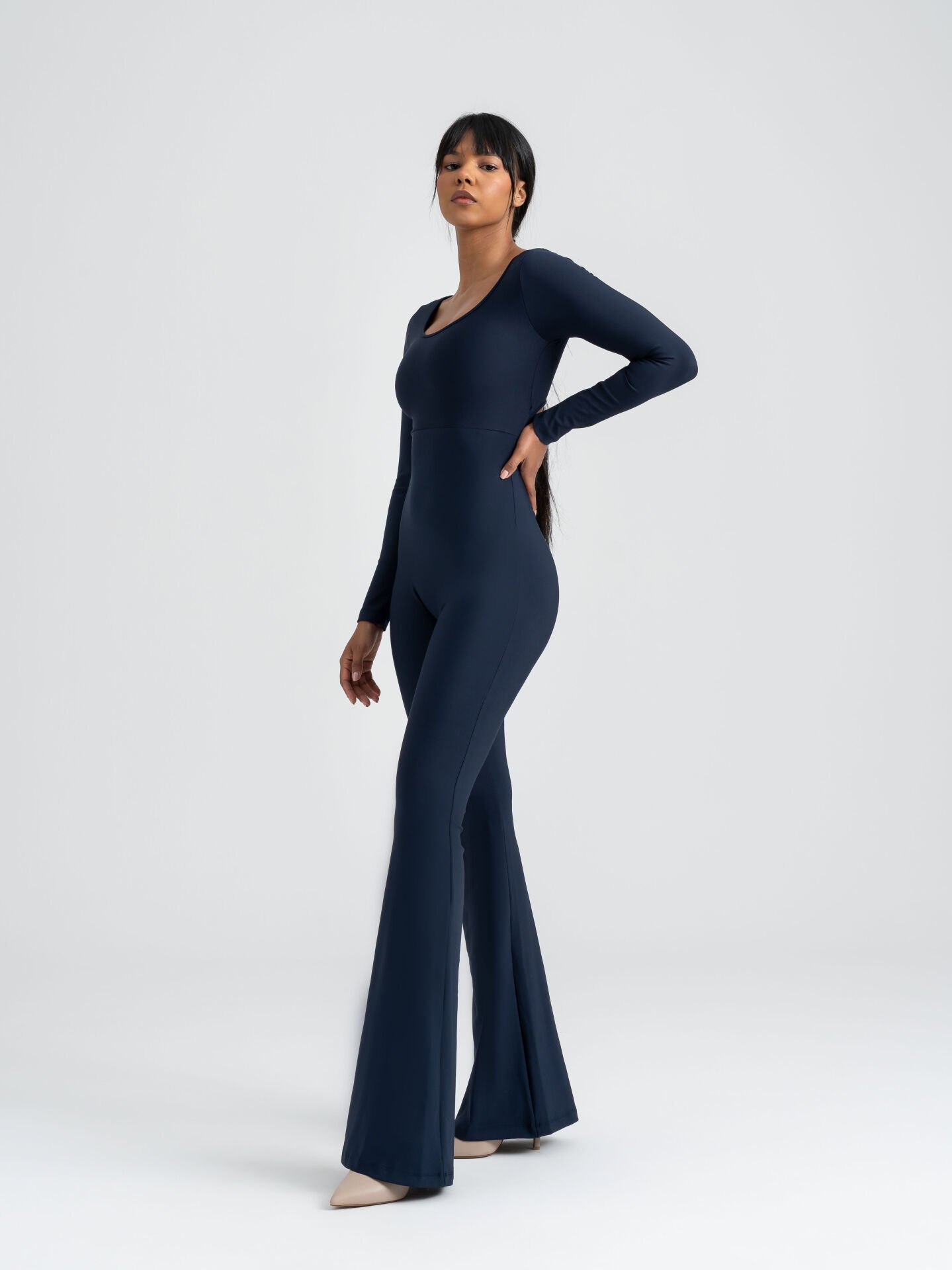 KOD 3105 – LACİVERT İSPANYOL PAÇA SCRUNCH BUTT UZUN KOLLU TULUM