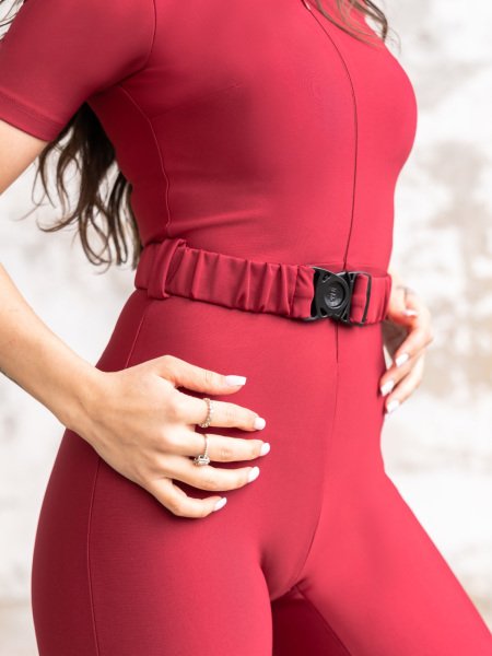 Kısa Tulum Kemer Aksesuarlı Bordo Renk 2341