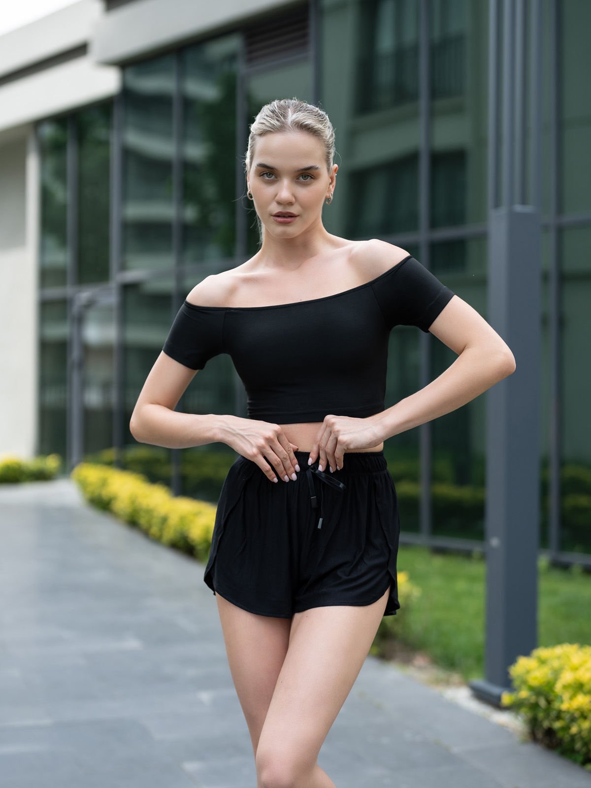 Rahat Omuz Açık Tshirt Kısa Kol Siyah Renk 084