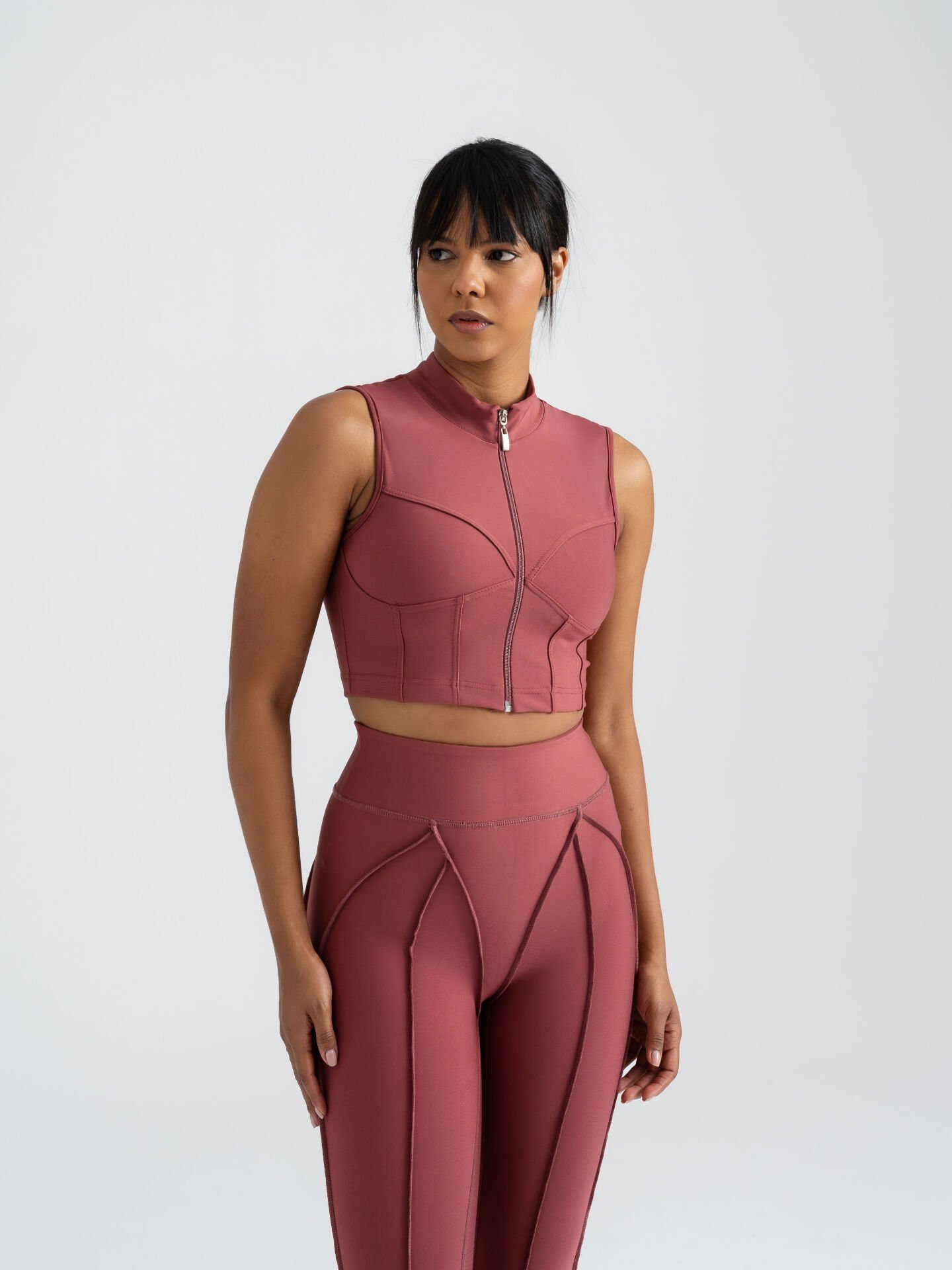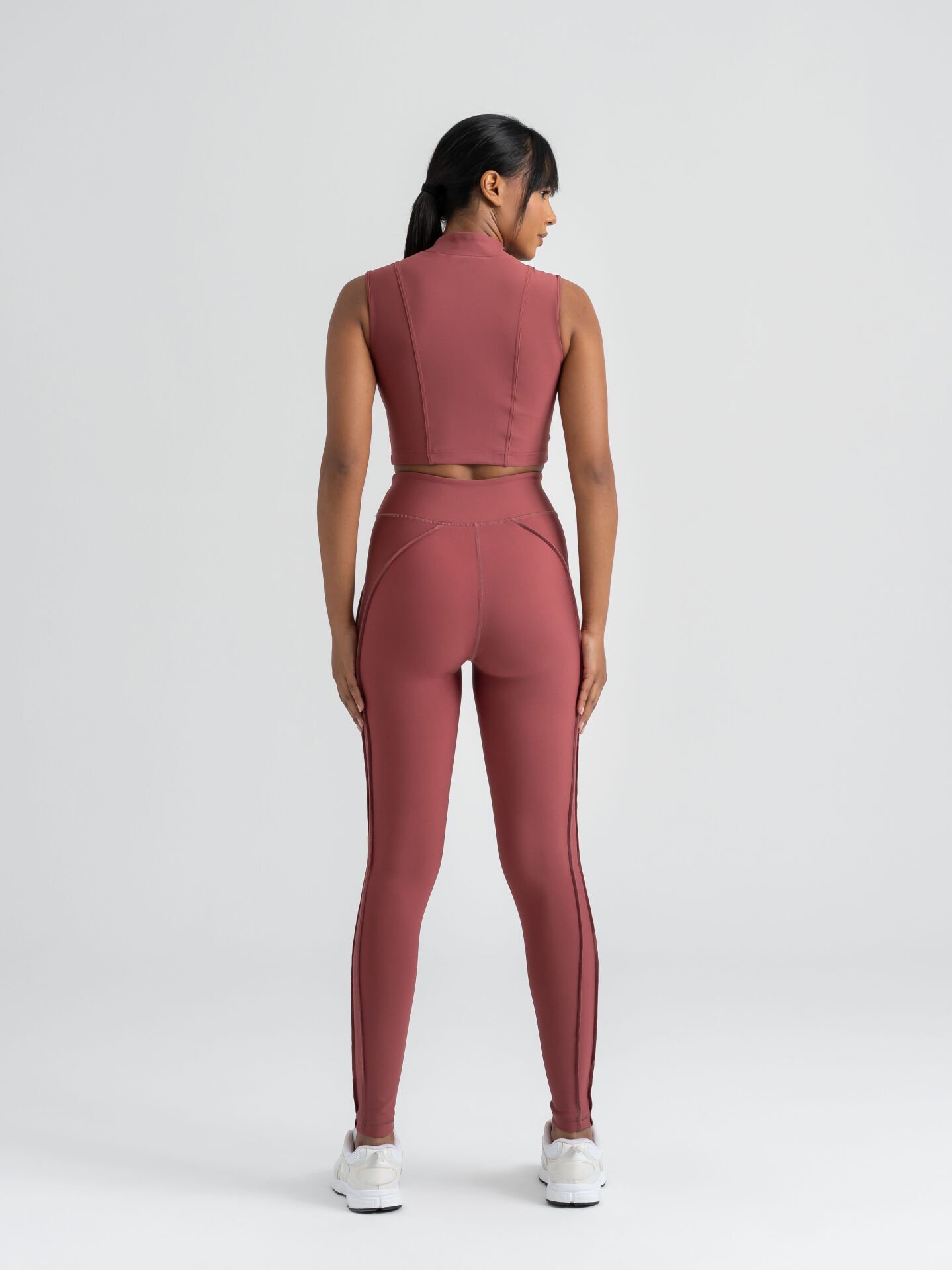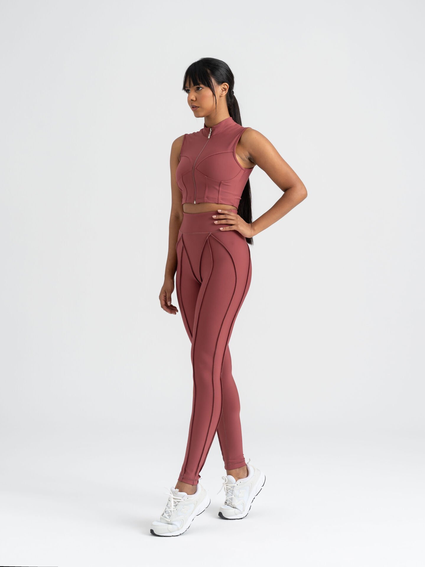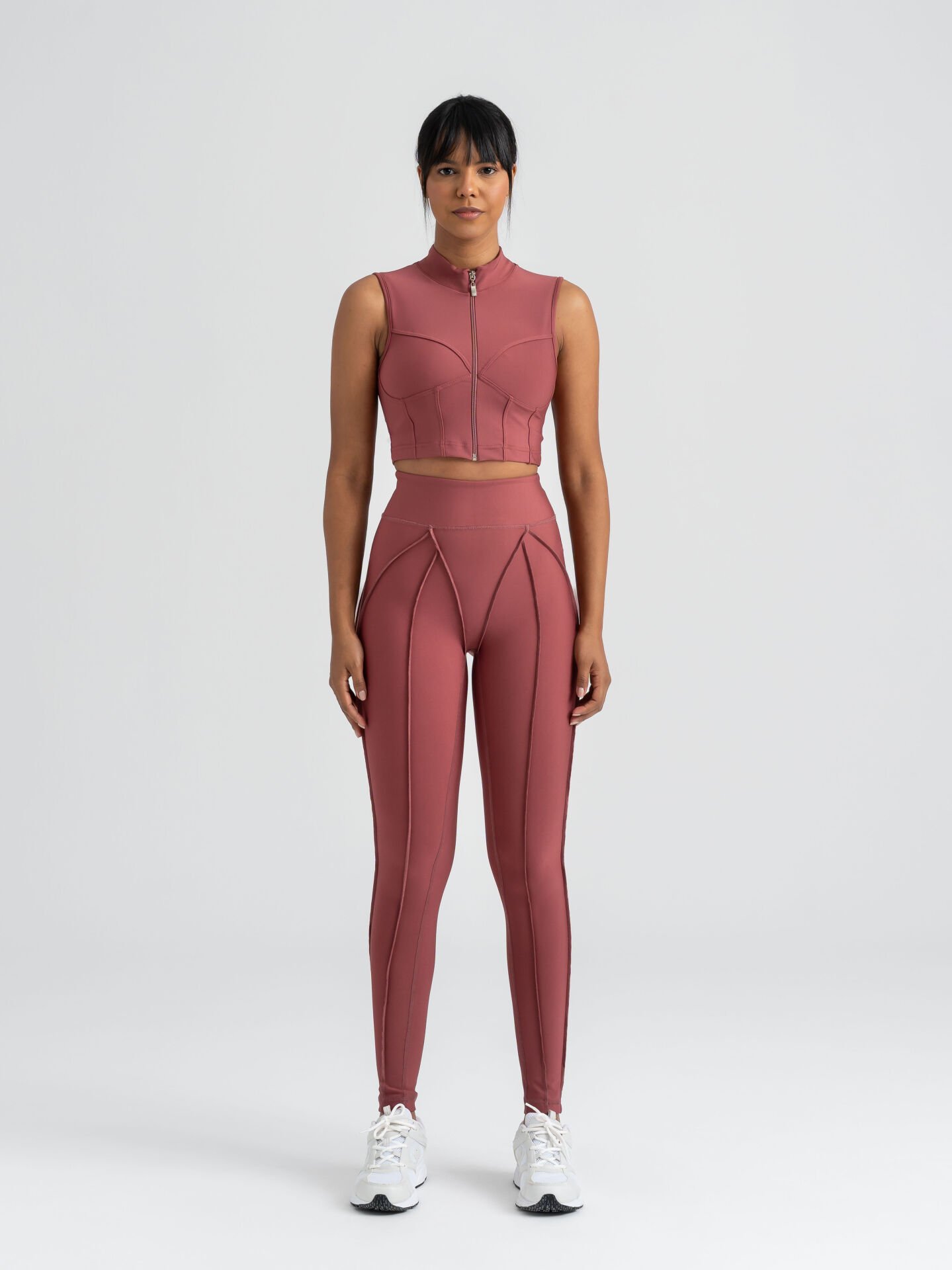 Vücudu şekillendiren dikiş hatlarıyla öne çıkan bu rose tayt, sportif şıklığı ve konforu bir araya getirir.