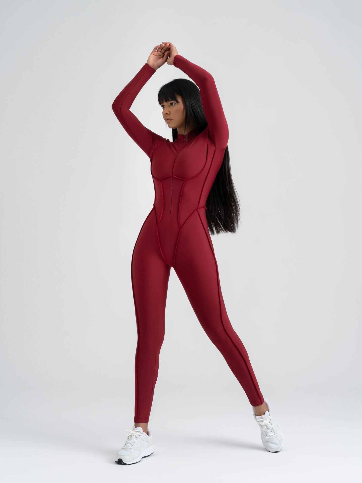 Sculpt Line Uzun Kollu Tulum Bordo Renk 2357