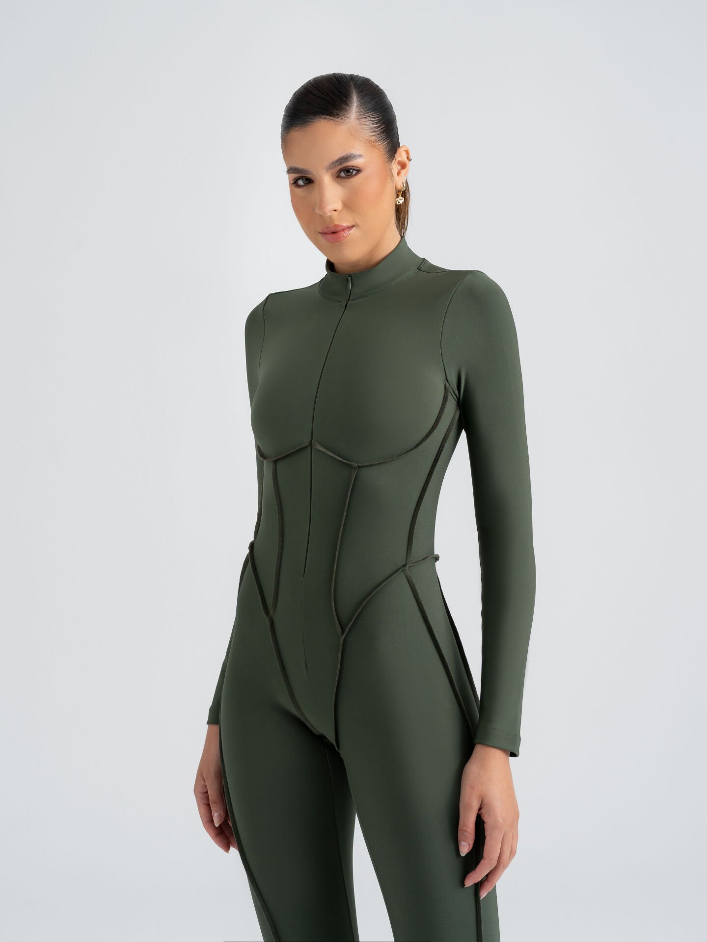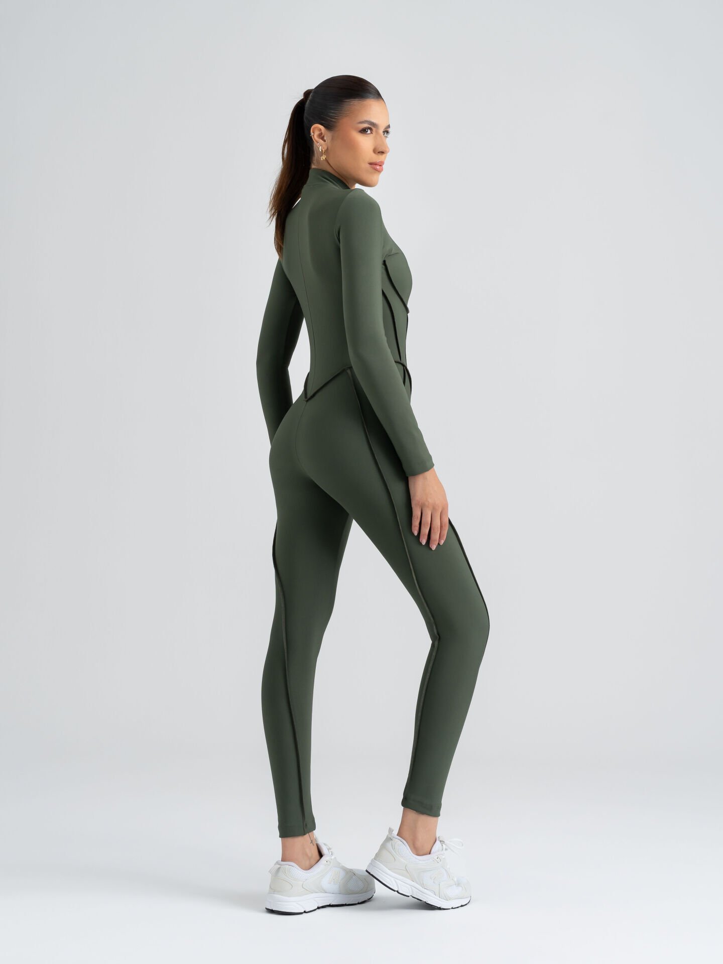 Sculpt Line Uzun Kollu Tulum Haki Renk 2356