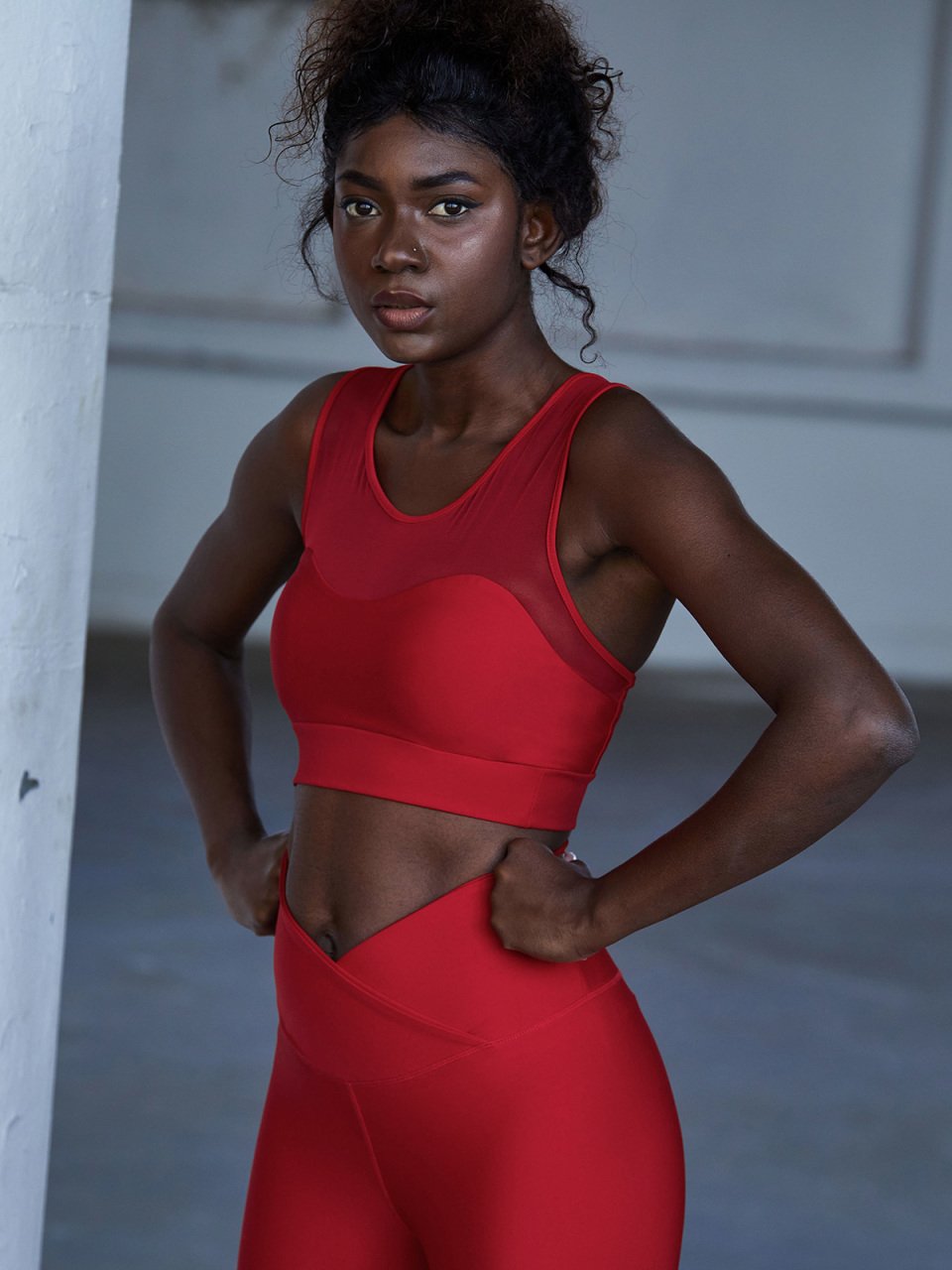 Tül Detaylı Spor Bustiyer Kırmızı Renk 204