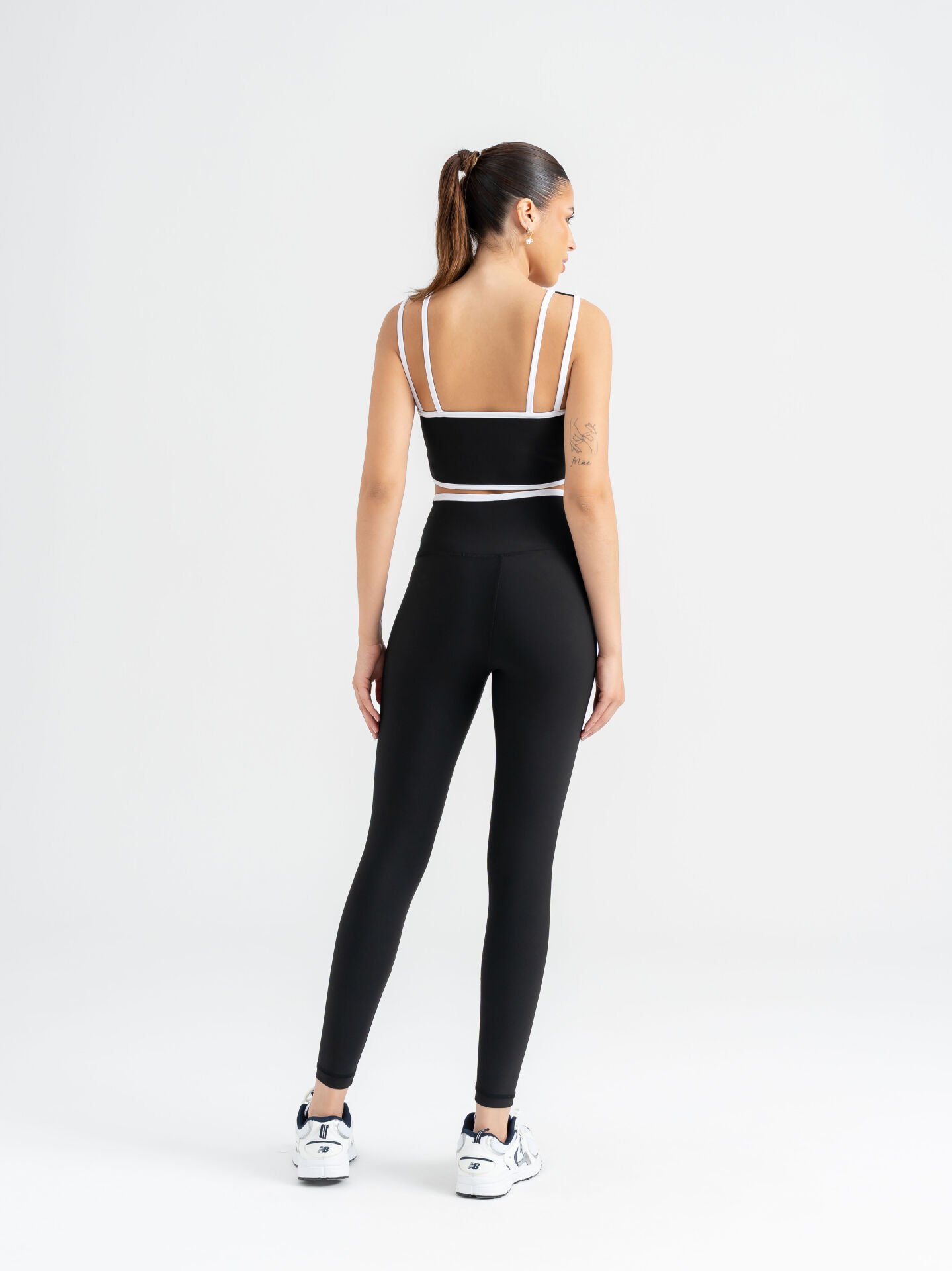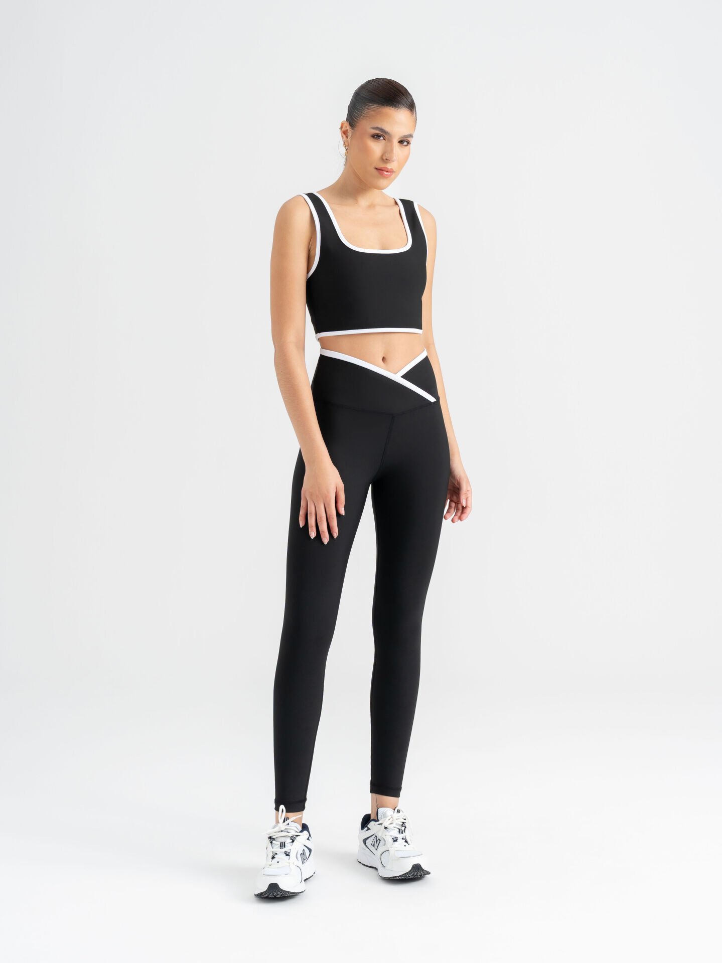 V-Belt Kontrast Tayt, bel kısmındaki beyaz V formundaki kesimi ile beli optik olarak ince gösterir ve güçlü bir siluet oluşturur.