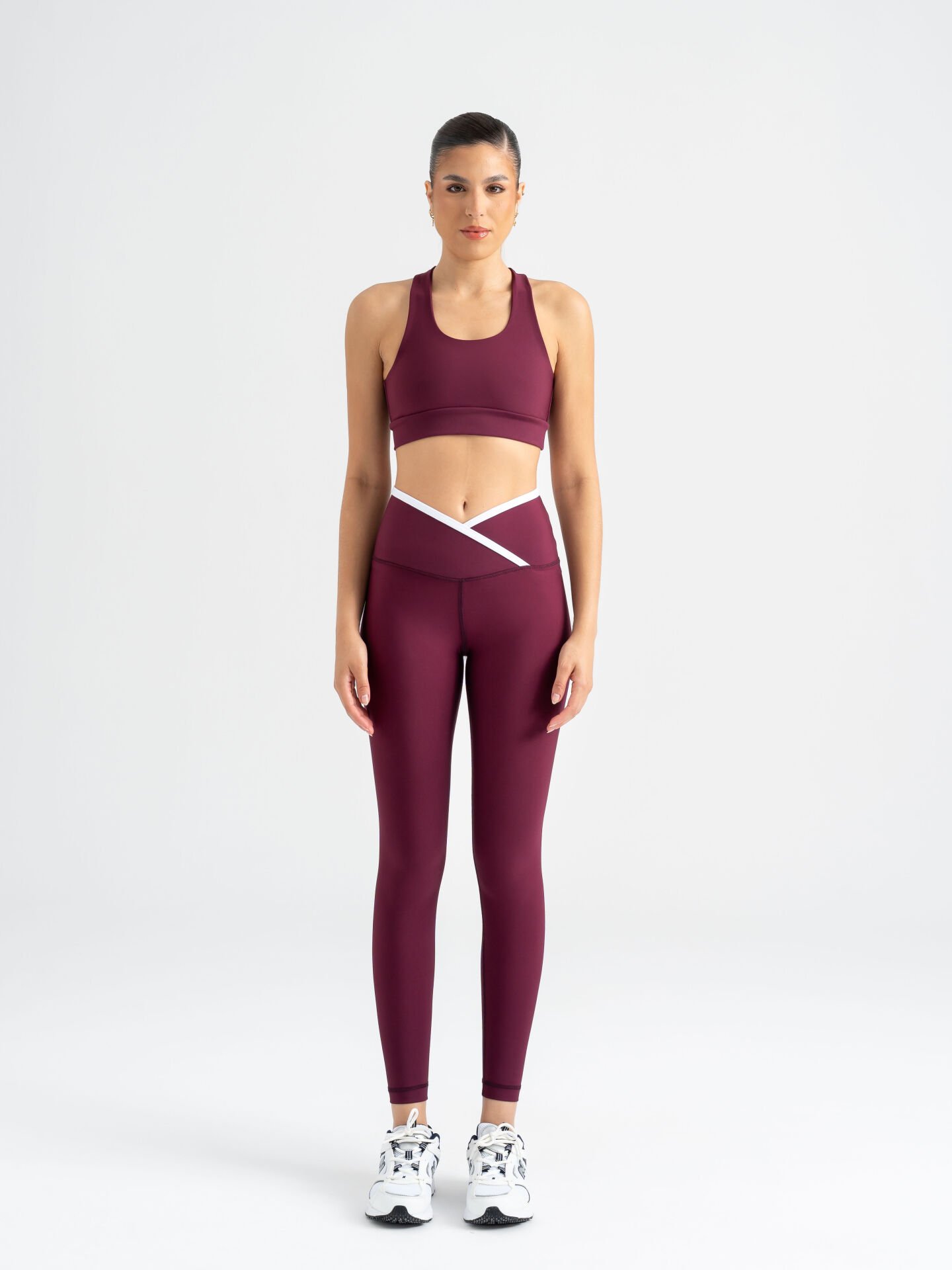 V-Belt Kontrast Tayt, bel kısmındaki beyaz V formundaki kesimi ile beli optik olarak ince gösterir ve güçlü bir siluet oluşturur.