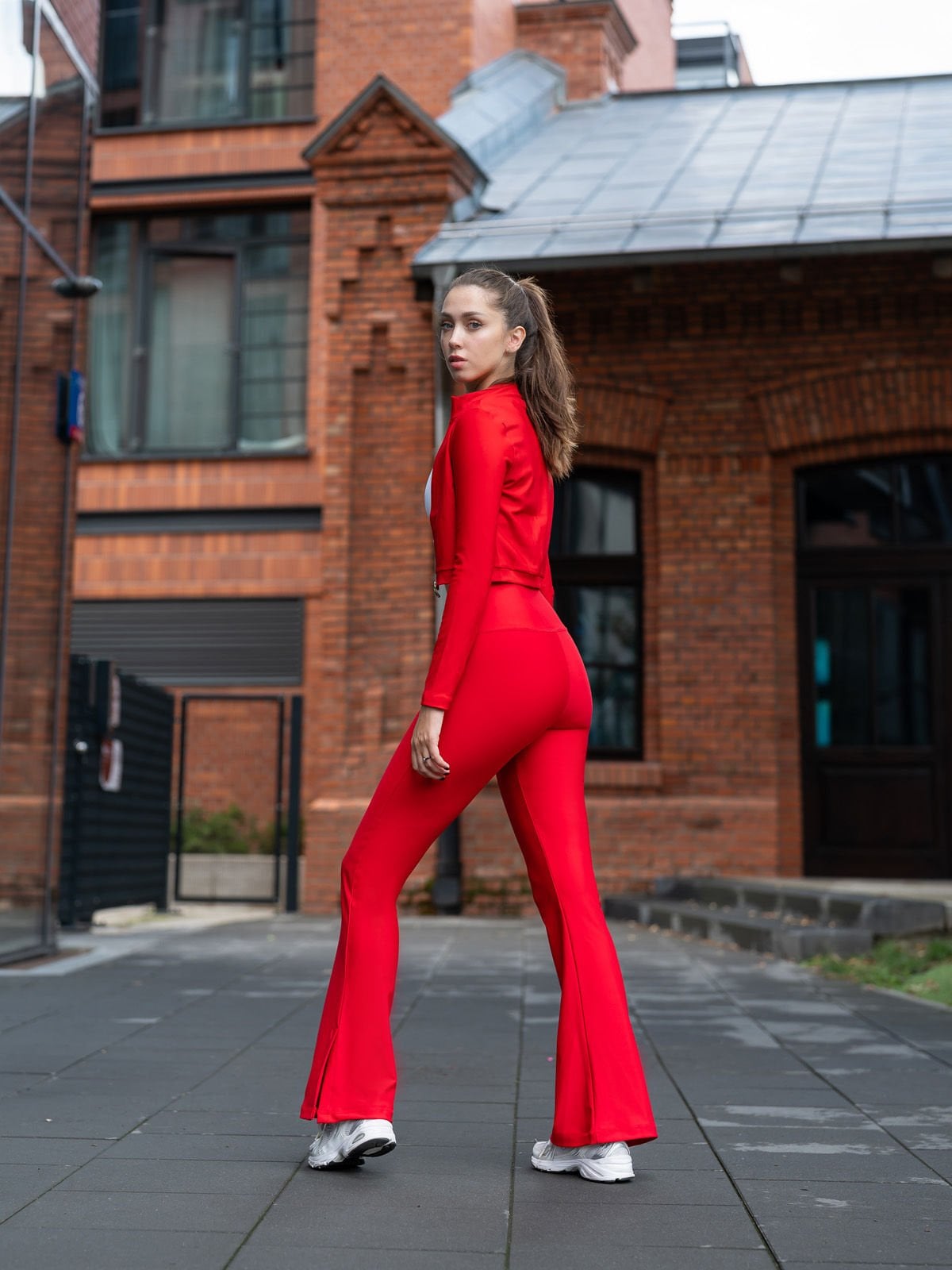 Yırtmaçlı İspanyol Paça Tayt Kırımızı Renk 1261